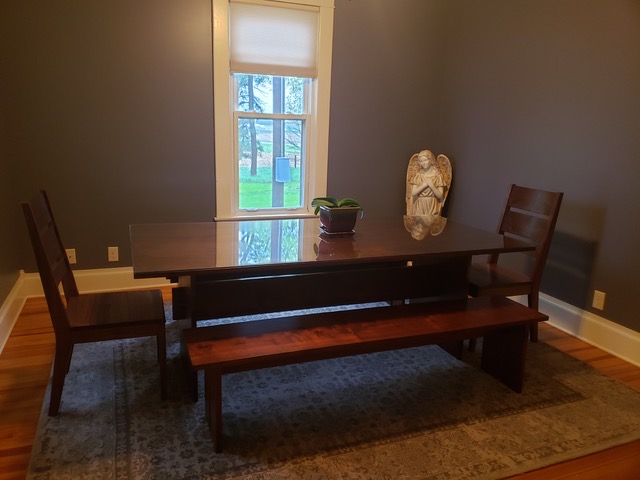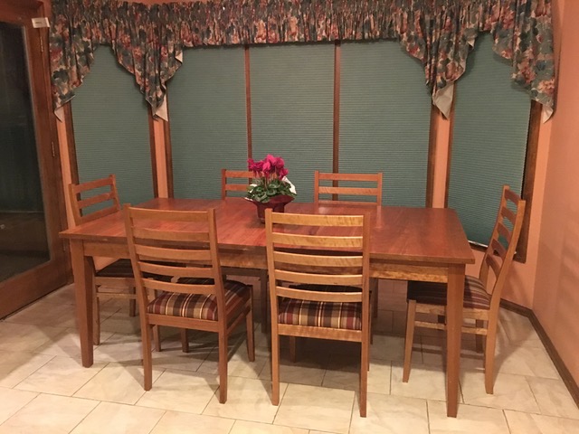 Scope: Dining Room Table with two expansion leaves stored inside the table