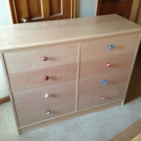 Scope: Eight drawer dresser with soft close slides and custom pull knobs