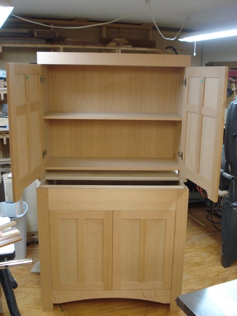 An architect friend of mine asked if I would make some custom cabinetry for his home. He provided design drawings that included the Christian cross,and he applied final finish after the cabinets were assembled. The photographs below show the raw cabinets prior to finish application.